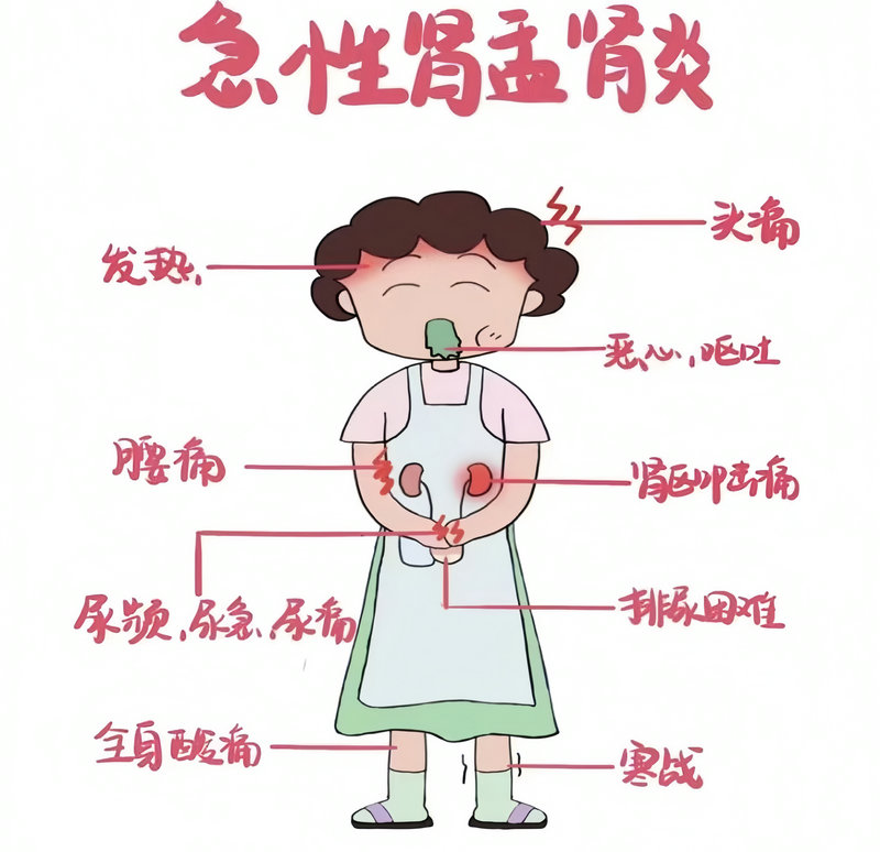 肾盂肾炎是一种上尿路感染,腰痛的同时一般伴有发热、寒战等感染的表现,用手去叩击肋脊角可明显感受到疼痛。肾盂肾炎还可能合并尿路刺激症状,如尿频、尿急、尿痛。
