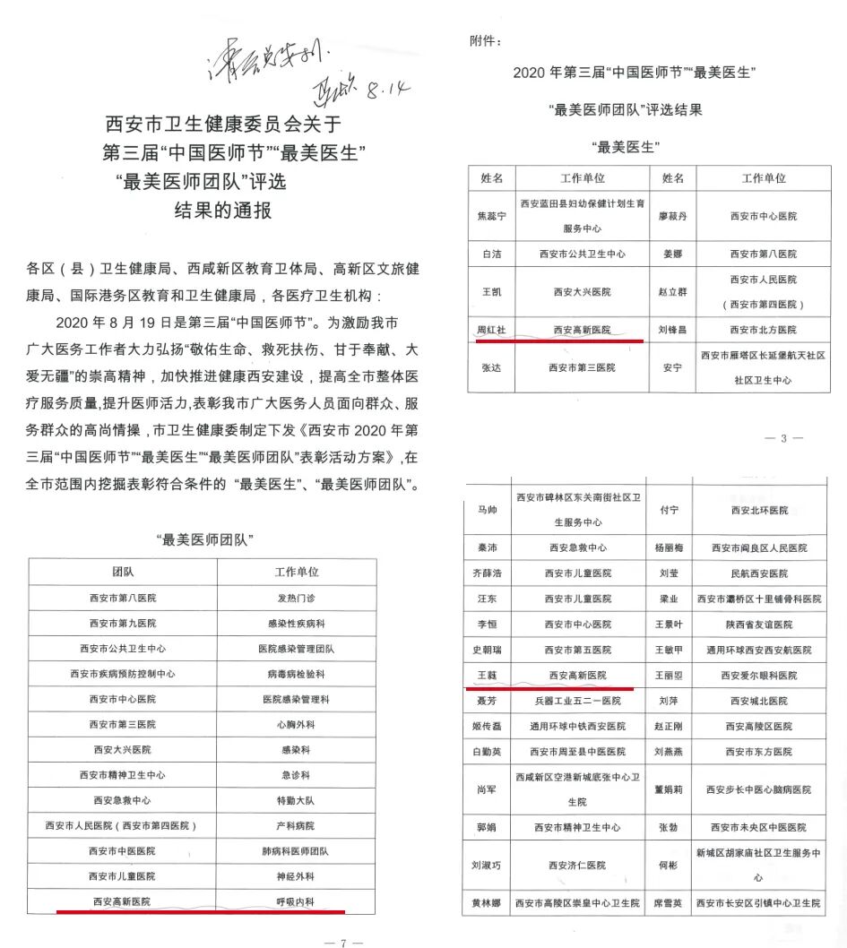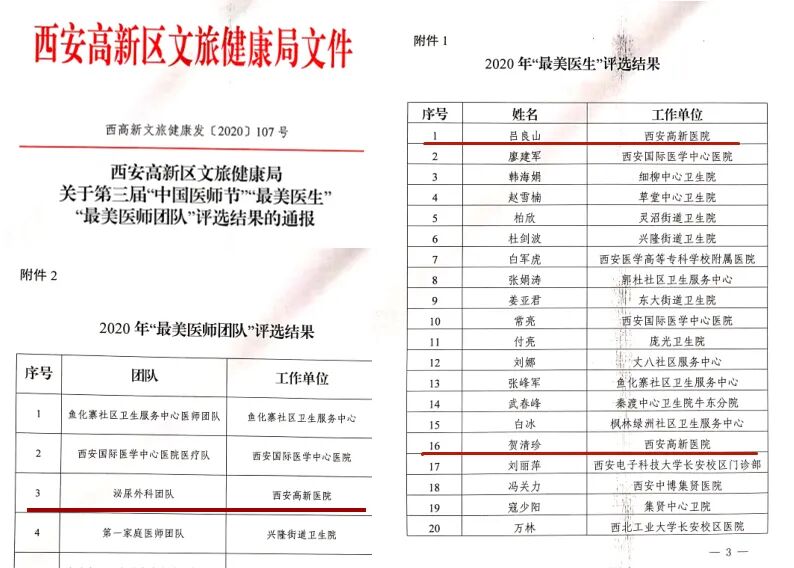 8月17日,西安市卫健委,高新区文旅健康局召开表彰大会,对在日常工作和战疫期间做出突出贡献的医生和团体予以表彰。2020年度西安市、高新区“最美医师”、“最美医生团队”新鲜出炉。