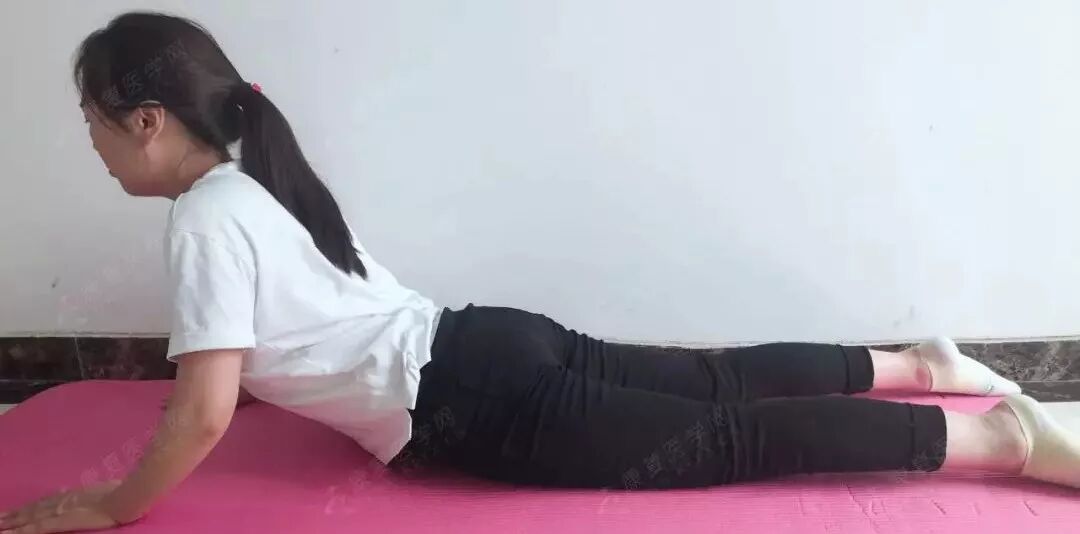 俯卧,肘部放在肩膀的正下方,保持髋前部紧贴地板,保持5-10s,重复2-3次。